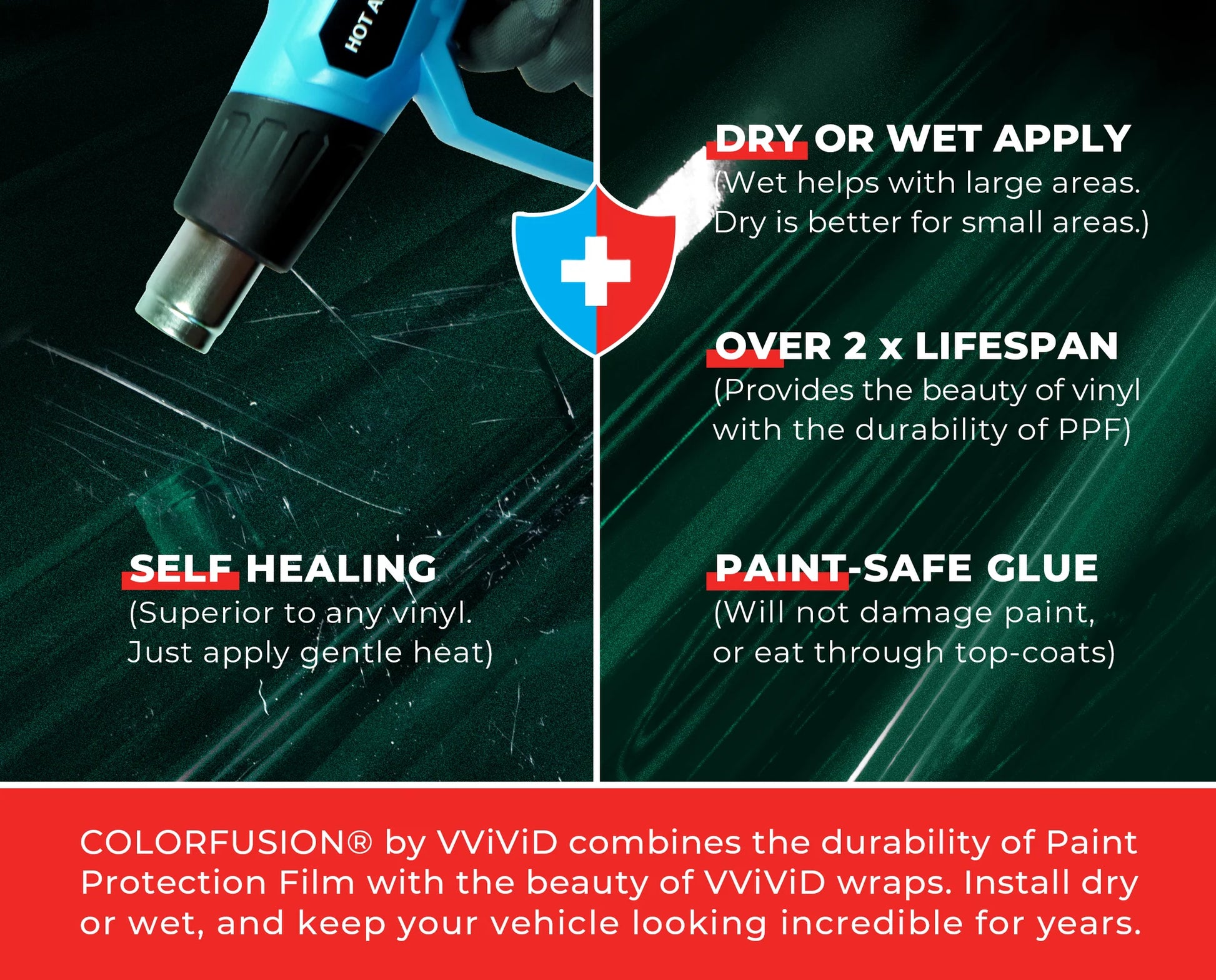 - Color PPF: ColorFusion by VViViD combines the durability of Paint Protection Film (PPF), with the eye-catching beauty of VViViD’s industry-leading wraps, ensuring your vehicles’ finish remains pristine twice as long as other films. ColorFusion is simply the most advanced automotive wrap you can own.