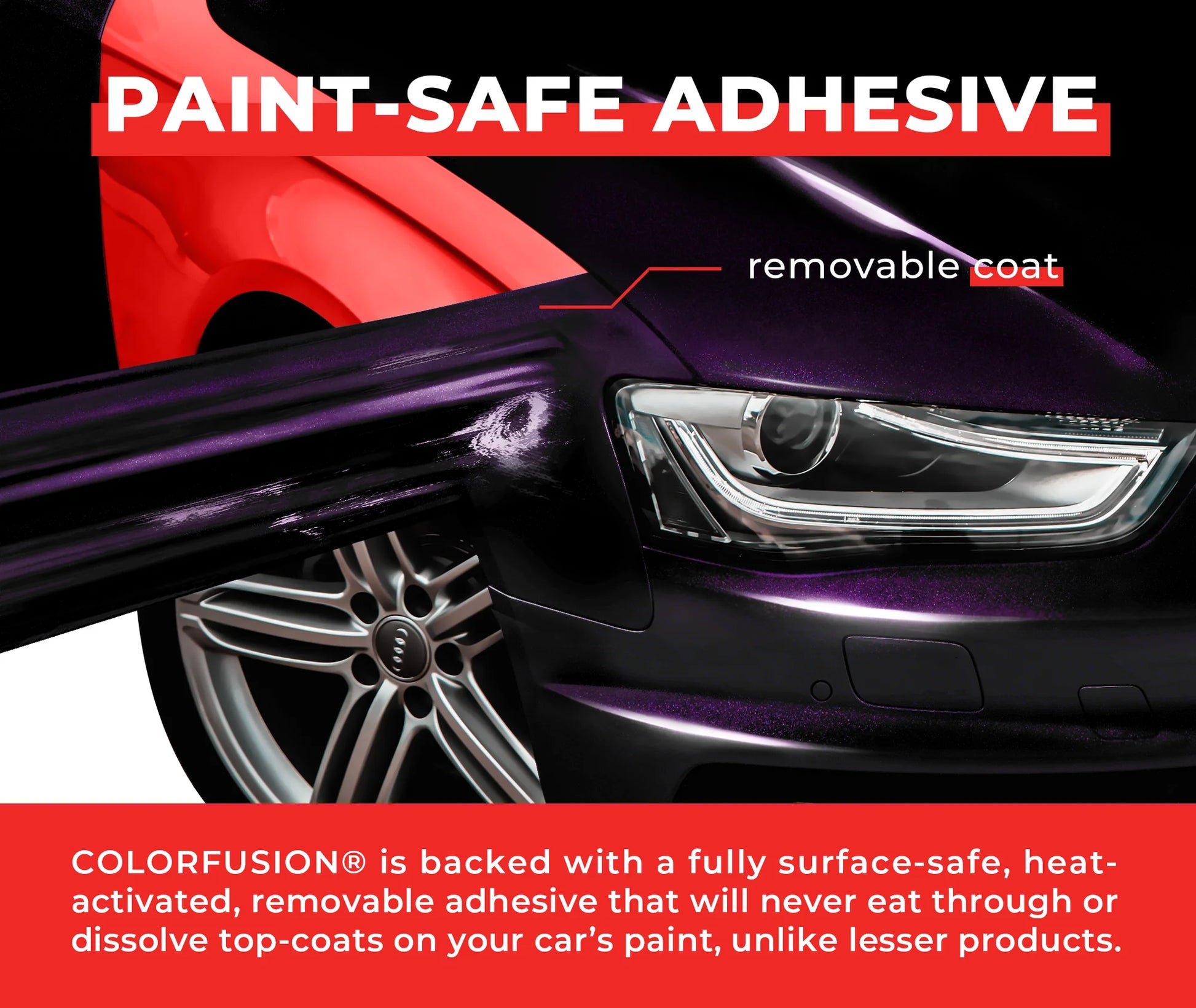 • Paint-Safe Adhesive: ColorFusion® is backed with a fully surface-safe, heat-activated, removable adhesive that will never eat through or dissolve top-coats on your car’s paint, unlike lesser products.