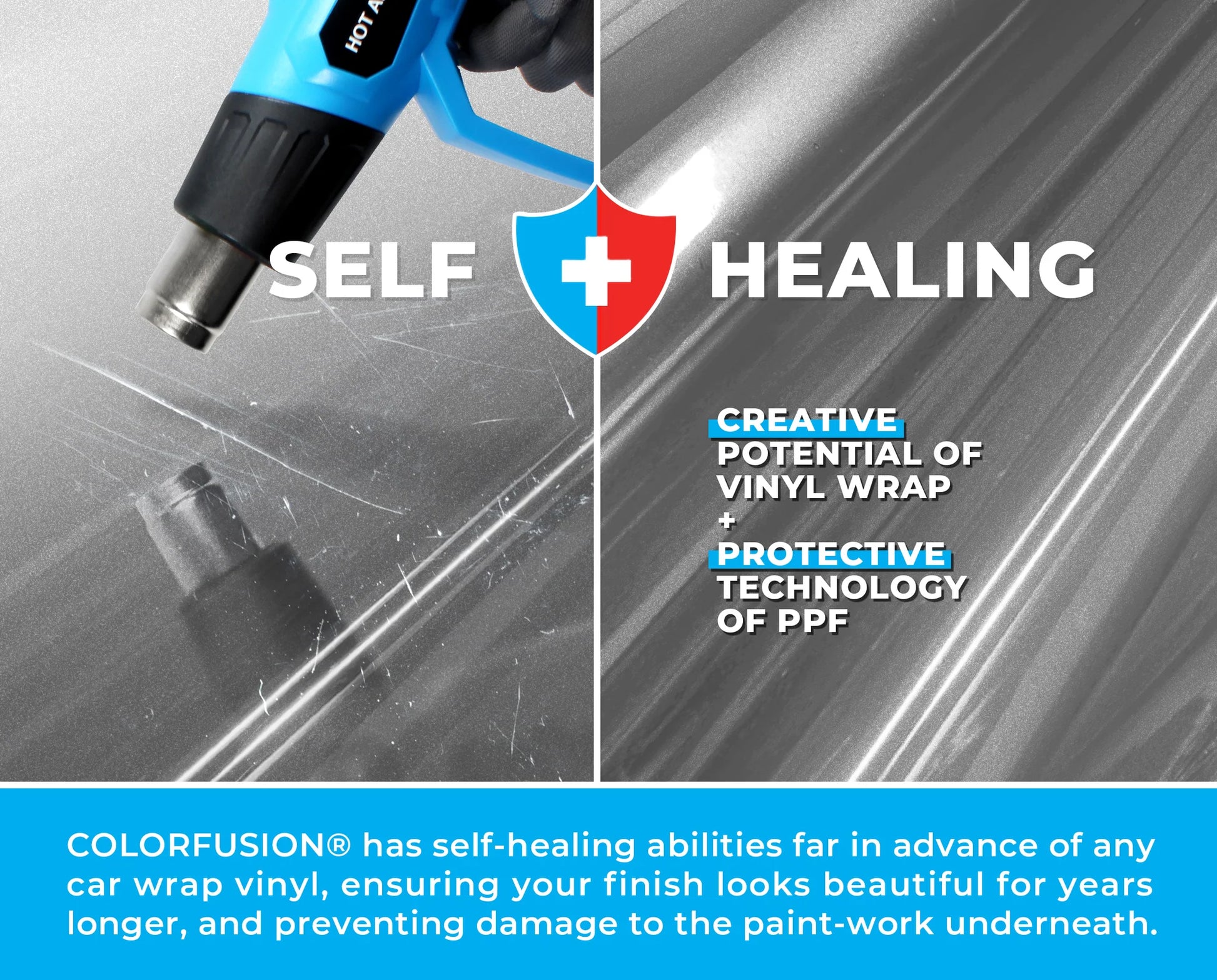 - Exceptional Self-Healing: ColorFusion® has self-healing abilities far in advance of any car wrap vinyl, ensuring your finish looks beautiful 2 x longer than other wraps, and preventing damage to the paint-work underneath. Gently apply heat with a heat gun, and watch your ColorFusion® wrap heal from scratches that would spell the end for any other film.