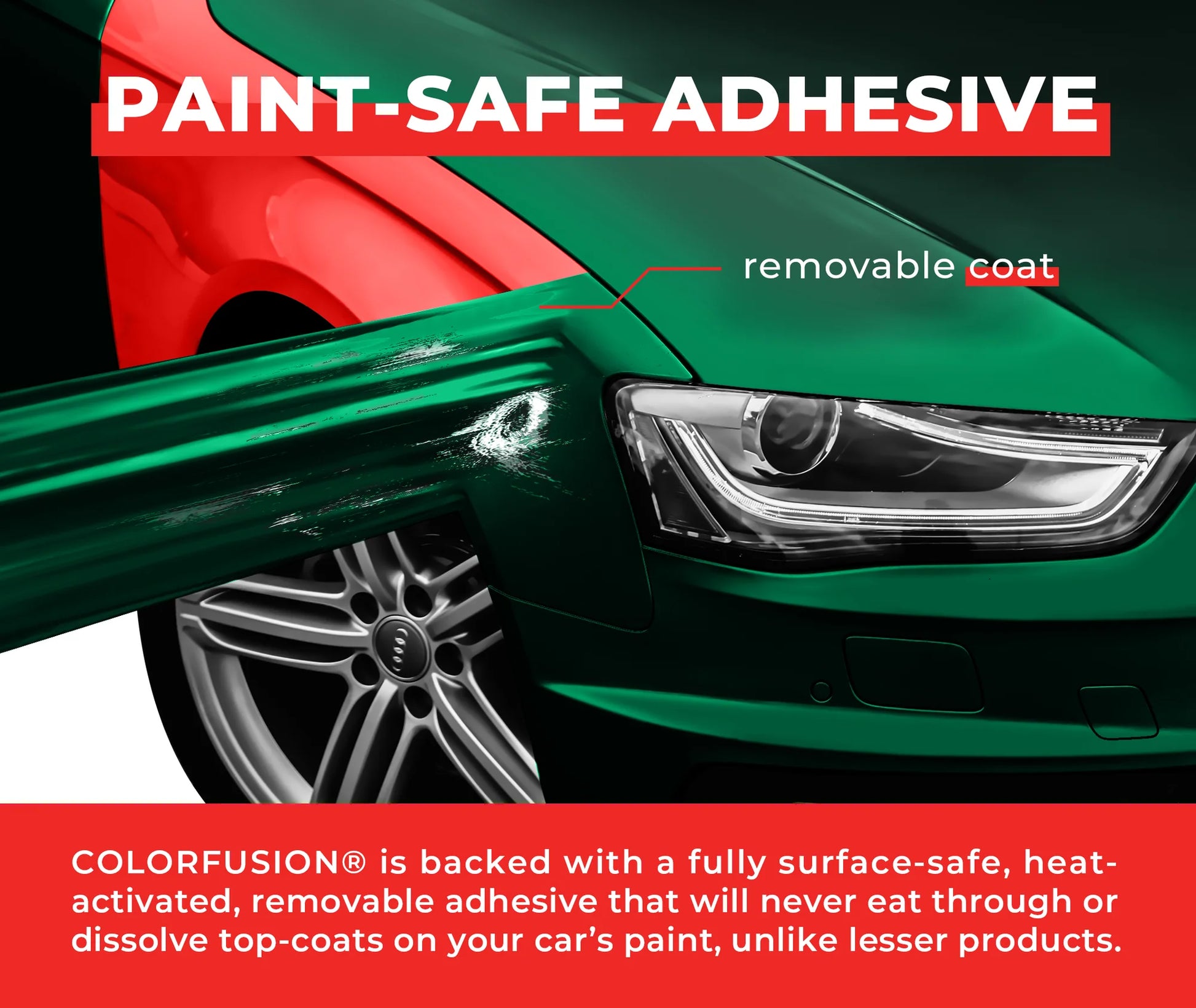 - Paint-Safe Adhesive: ColorFusion® is backed with a fully surface-safe, heat-activated, removable adhesive that will never eat through or dissolve top-coats on your car’s paint, unlike lesser products.
