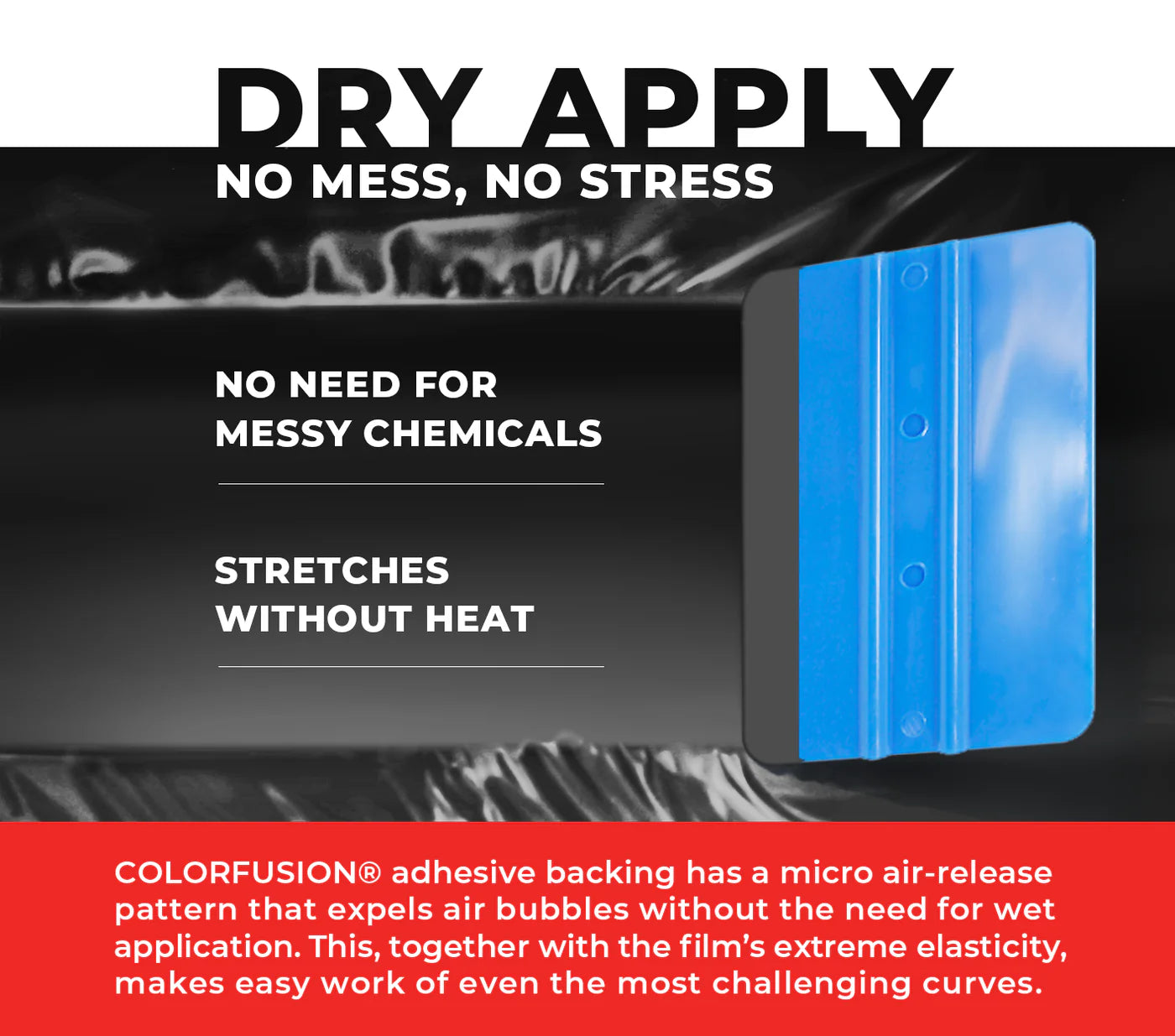 - Paint-Safe Adhesive: ColorFusion® is backed with a fully surface-safe, heat-activated, removable adhesive that will never eat through or dissolve top-coats on your car’s paint, unlike lesser products.