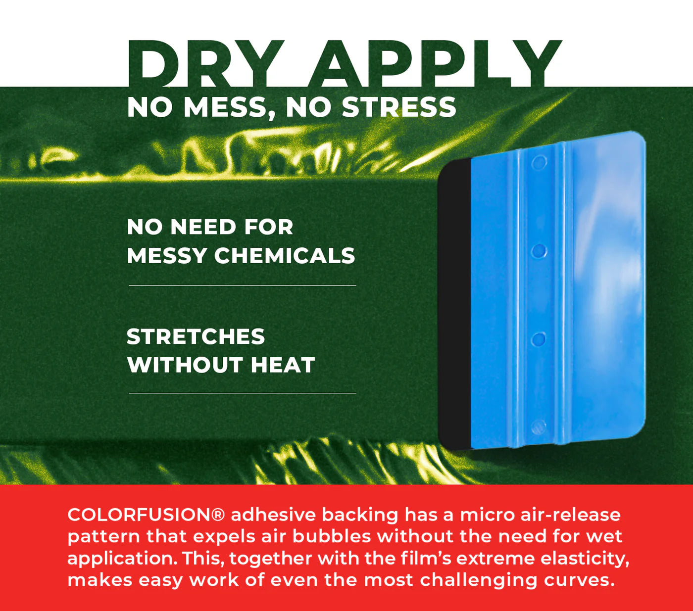 - Paint-Safe Adhesive: ColorFusion® is backed with a fully surface-safe, heat-activated, removable adhesive that will never eat through or dissolve top-coats on your car’s paint, unlike lesser products.