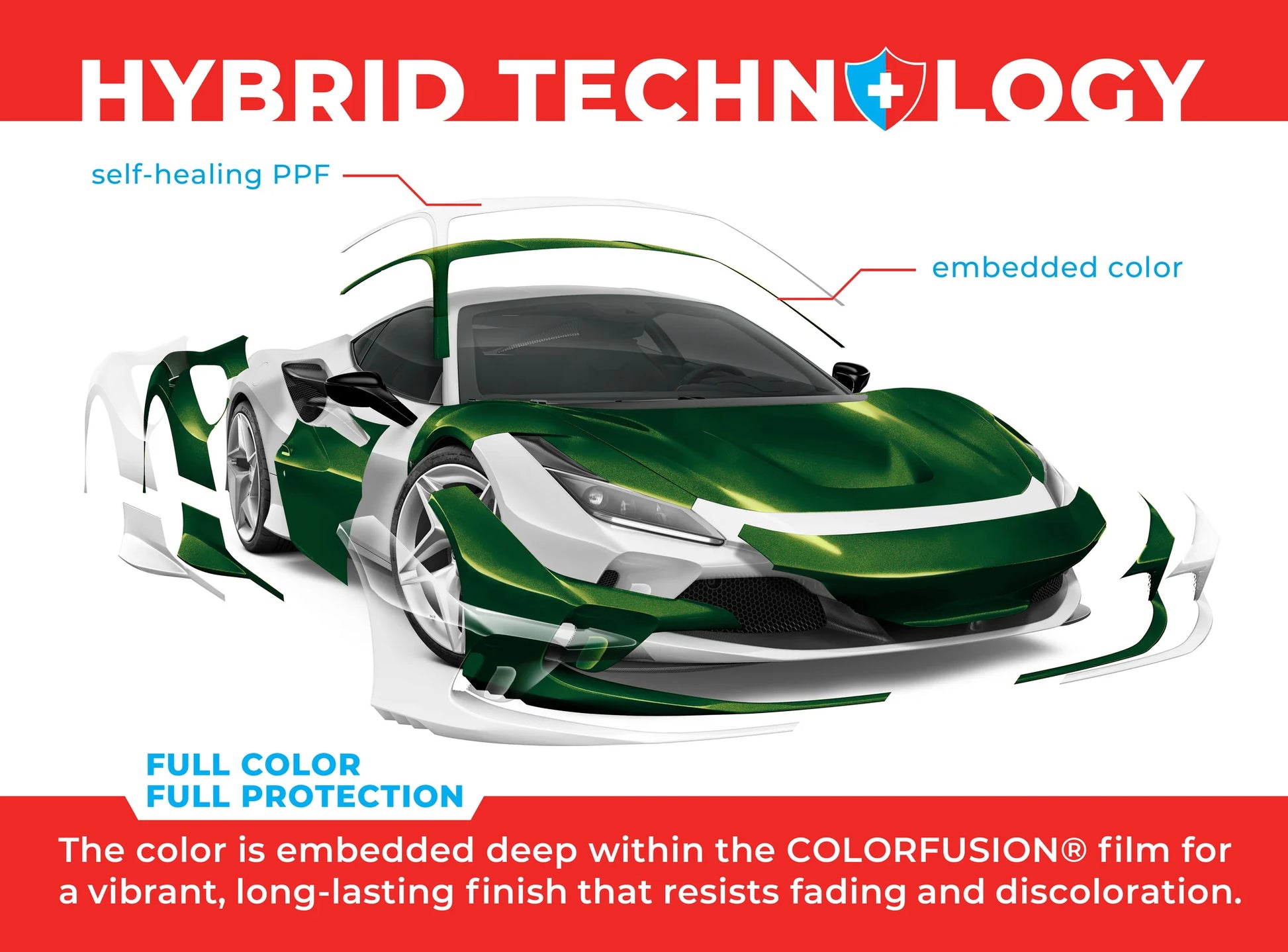 ColorFusion® by VViViD combines the durability of Paint Protection Film (PPF), with the eye-catching beauty of VViViD’s industry-leading wraps, ensuring your vehicles’ finish remains pristine twice as long as other films.